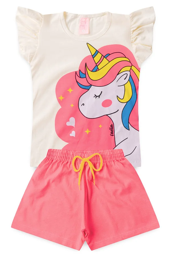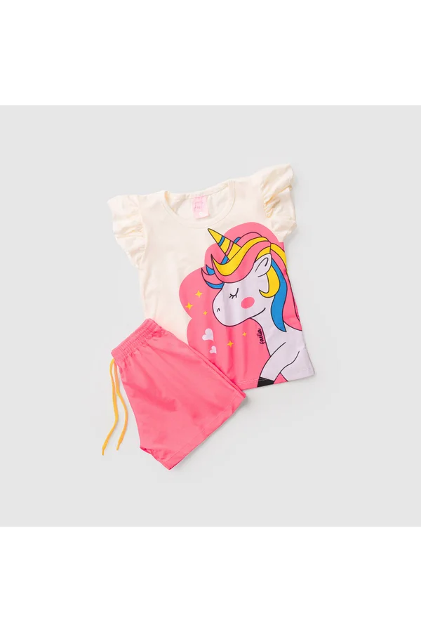 Conjunto Infantil Verão Feminino Unicórnio – Off