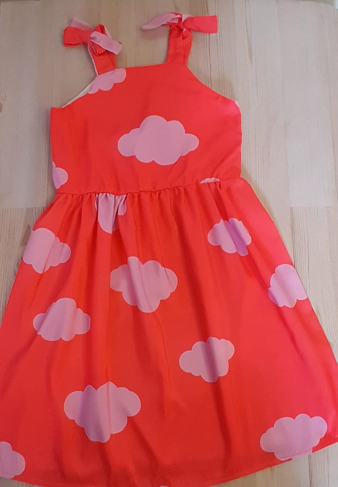 Vestido Infantil Verão – Estampa de Nuvens